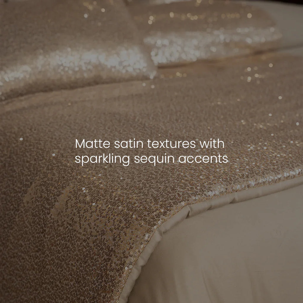 The set usually includes a duvet cover, pillow shams, and possibly other decorative pieces. The opulence and luxurious look and feel of the bedding makes it a special addition to a bride's wedding night.