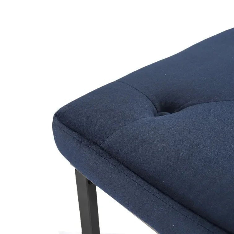 Bring a touch of elegance to any space with this versatile upholstered bench. Its rectangular frame is made of powder-coated metal in a brushed gold tone, and features a crossed base for added stability. Its top is upholstered in velvet and features button tufting. This bench’s generous 47.2”W size accommodates two people. It can be used at the foot of a bed, as an alternative to a coffee table, or in your entryway. This distinctive bench completes the look in any contemporary or glam space.