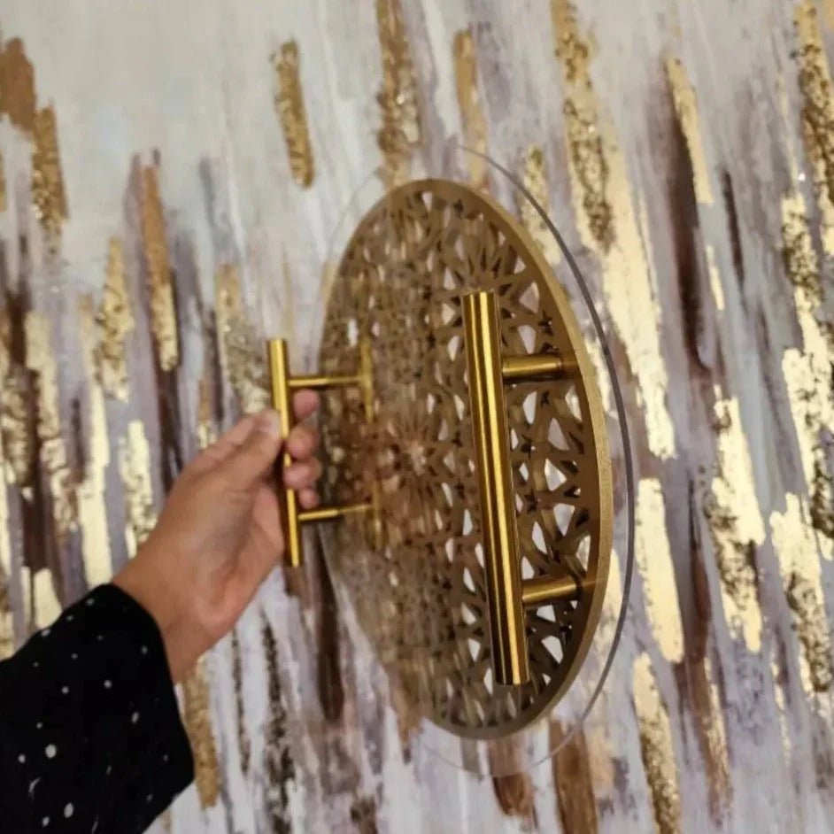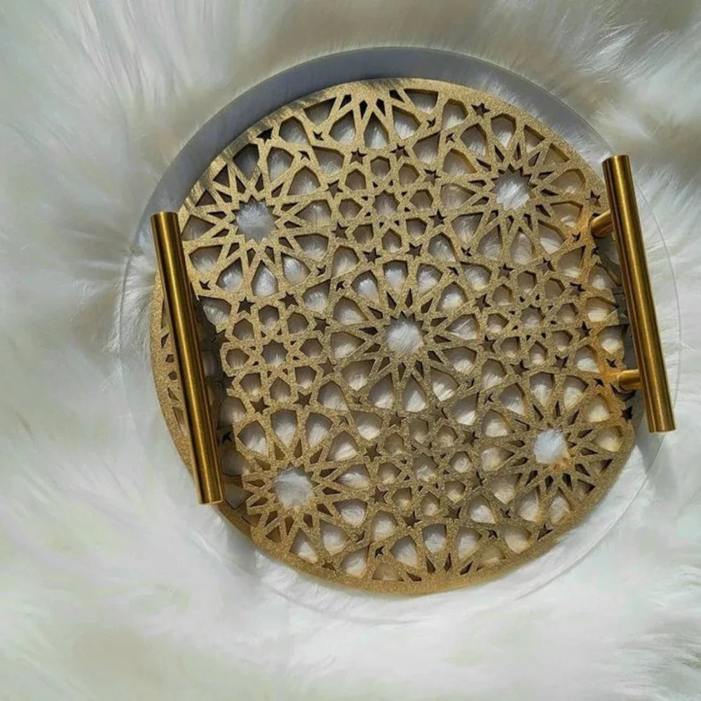 Islamic Pattern Wooden Sweets Tray With Acrylic Top - Gold/Silver