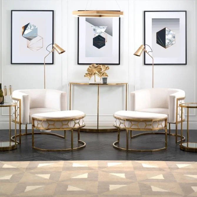 A unique and distinctive Chair with footstool with laser-cut hexagonal detailing.