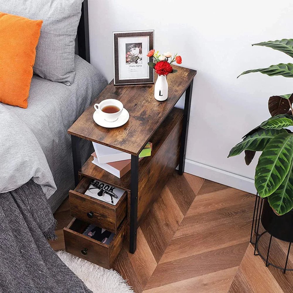 - Vintage Sofa End Table Bedside Table With Storage Cabinet for Living Room.