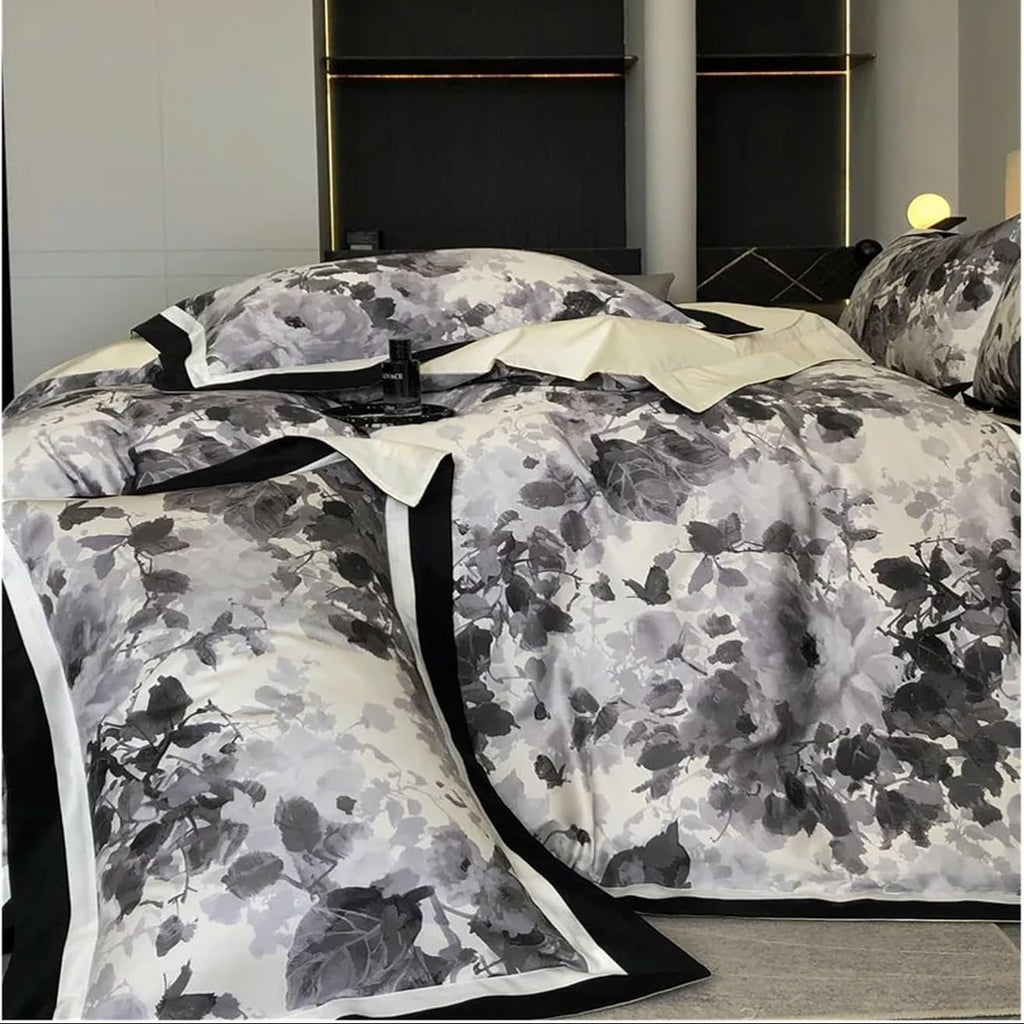 Vintage Black Gray Chic Patchwork Printed Duvet Set