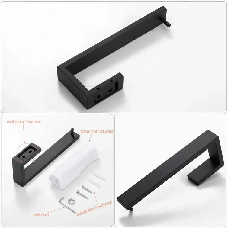 The towel holder has an attractive matte black appearance and "7" shaped design, which is suitable for various decoration styles.